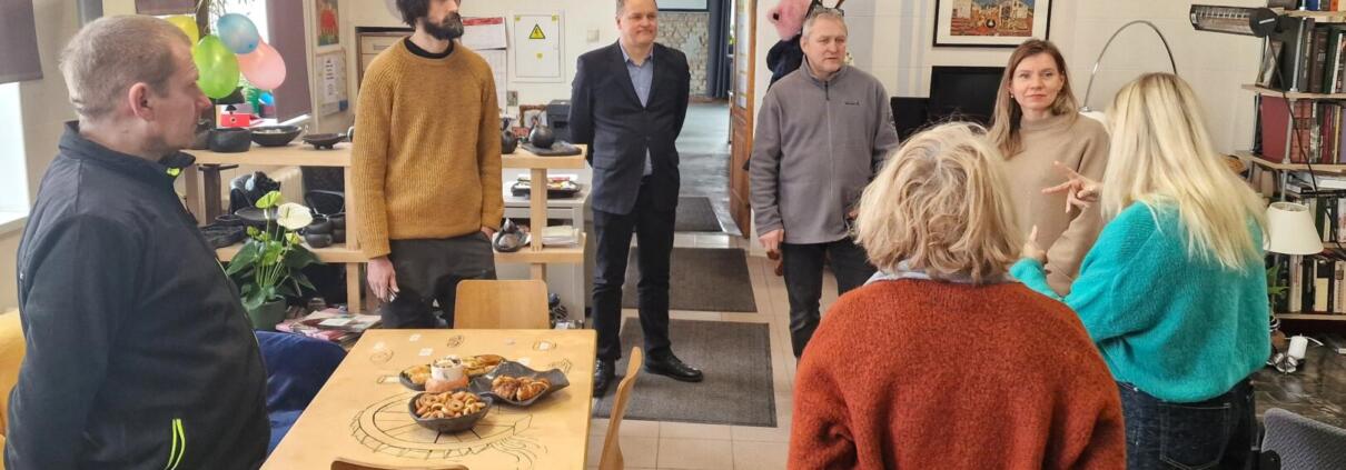 Viesus sirsnīgi sagaidīja centra vadītāja Olga Borisova, kura pastāstīja par resocializācijas programmu, centra ikdienu un pieeju cilvēku atbalstam, kā arī veica ekskursiju pa telpām.
